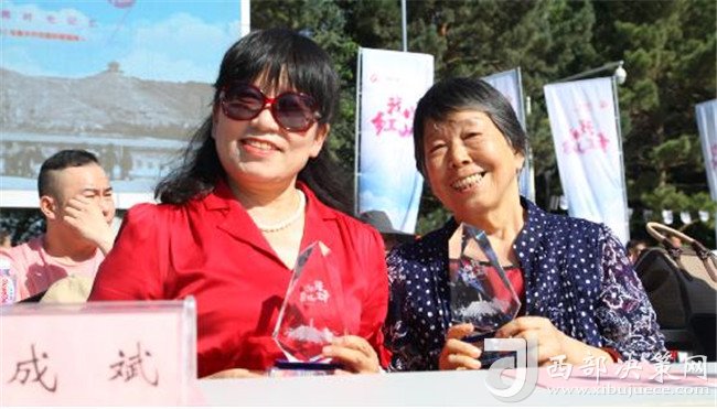 為展會提供珍貴照片并獲得獎杯的成為華(成斌母親)及張麗鳳