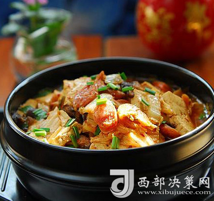 1.石鍋燒熱,加少許油,下辣白菜翻炒。