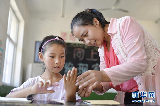 9月9日,崔芳英老師在為兩名學(xué)生上數(shù)學(xué)課。新華社記者 朱旭東 攝