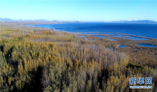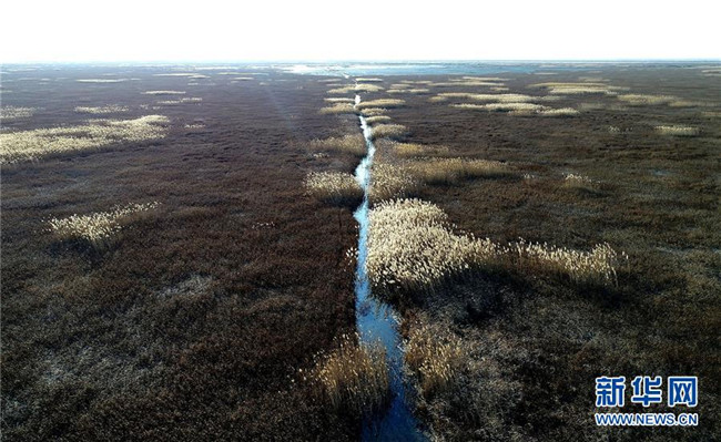 這是天津南部的北大港濕地(2017年11月15日無人機(jī)拍攝)。