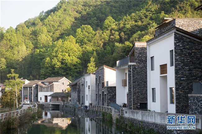 浙江省杭州市富陽區(qū)洞橋鎮(zhèn)文村地處富陽區(qū)遠(yuǎn)郊,村中保有40幢古民居,建筑師王澍以當(dāng)?shù)氐慕ㄖ牧虾蜕顐鹘y(tǒng)為村里設(shè)計(jì)了14幢新民居,呈現(xiàn)出美麗宜居鄉(xiāng)村新面貌(4月10日攝)。 新華社記者 翁忻旸 攝