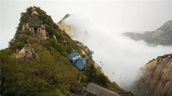 賞紅葉——華山的紅葉是噴薄的,那是一種一瀉千里,從山頂直鋪下山谷,又從山谷延綿更遠(yuǎn)的群山,像瀑布一般,而葉愈遠(yuǎn)處愈紅,紅似火焰耀眼,眼前的則紅黃交錯,讓人目不暇接。