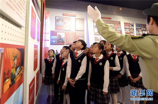 10月9日,少先隊(duì)員們?cè)谖渚不湛傟?duì)合肥支隊(duì)隊(duì)史館參觀。