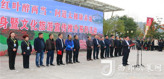 西部決策網——西部大開發(fā)訊(記者帥華鋒)十月的兩當,金風送爽,紅葉迎賓。正值習仲勛同志誕辰105周年之際,為了進一步傳承習仲勛等老一輩無產階級革命家在兩當兵變中創(chuàng)造出的“堅定執(zhí)著的理想信念,不怕犧牲的英雄氣概,百折不撓的頑強意志,依靠群眾的工作作風”精神,弘揚革命優(yōu)良傳統。10月16日,甘肅兩當縣“絢麗紅葉醉兩當·問道太極康養(yǎng)地”全民健身暨文化旅游宣傳推介系列活動在縣全民健身中心正式啟動。本次活動由中共兩當縣委、縣人民政府主辦,縣文化體育廣播影視局、縣體育總會、縣武術協會承辦。