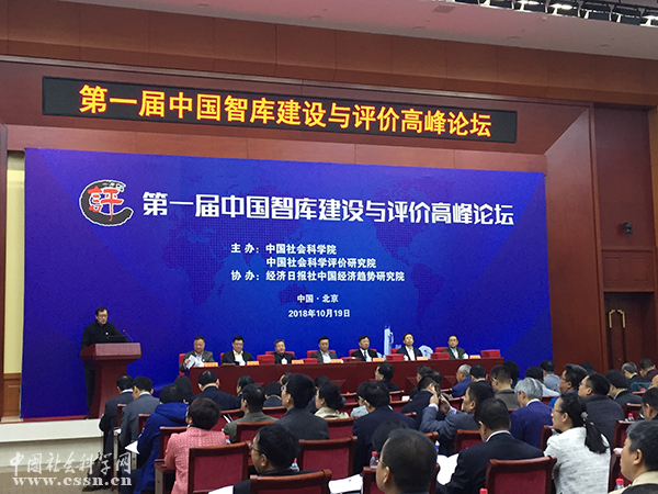 2018年10月19日,由中國(guó)社會(huì)科學(xué)評(píng)價(jià)研究院主辦,經(jīng)濟(jì)日?qǐng)?bào)社中國(guó)經(jīng)濟(jì)趨勢(shì)研究院協(xié)辦的“第一屆中國(guó)智庫(kù)建設(shè)與評(píng)價(jià)高峰論壇”在京舉行。來(lái)自中國(guó)社會(huì)科學(xué)院、部委所屬專(zhuān)業(yè)性智庫(kù)、各省市級(jí)地方社科院和黨校行政學(xué)院、各高校智庫(kù)、企業(yè)智庫(kù)、社會(huì)智庫(kù)的百余名國(guó)內(nèi)智庫(kù)專(zhuān)家學(xué)者出席本次論壇。