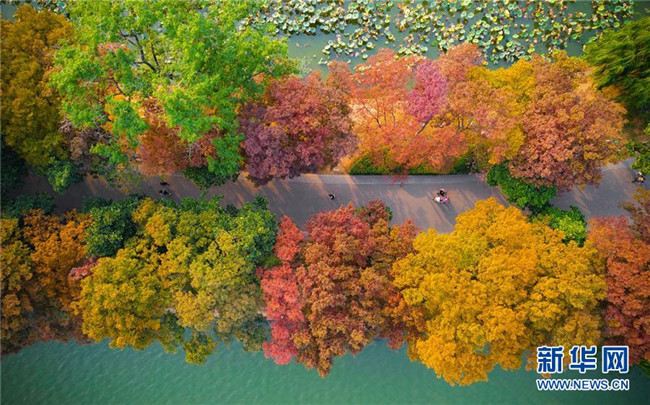 這是南京玄武湖景區(qū)秋景(10月30日無人機(jī)拍攝)。 金秋時(shí)節(jié),神州大地層林盡染,美不勝收。 新華社發(fā)(蘇陽 攝)