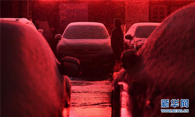 在青海省西寧市,一名市民冒雪前行(11月3日攝)。 11月3日,青海省西寧市等地迎來(lái)降雪。 新華社記者 吳剛 攝