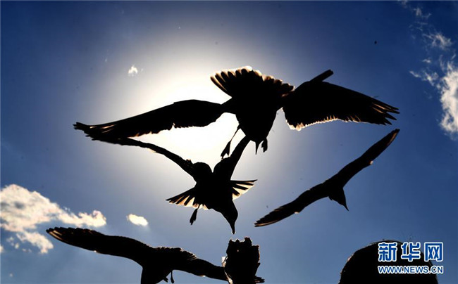 入冬以來,數(shù)萬只紅嘴鷗成為云南昆明市一道亮麗的風(fēng)景,它們翱翔在藍(lán)天下,在水面上覓食、游動(dòng),吸引眾多市民和游客前來觀賞拍照。新華社記者楊宗友攝