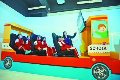 11月28日,天津市西青區(qū)西營門小學(xué)校園安全教育V實驗室正式開館運行。圖為該校師生們在安全教育V實驗室了解相關(guān)交通安全知識。
