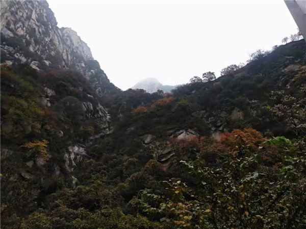 山路上,峻拔的山巖上爬滿了紅黃相間的樹木,云霧繚繞,一路上溪水潺潺,鳥鳴歡歌,石階古寺下,秋風(fēng)微涼,拋開一切雜念,心中只有這北方的深秋下,這一條古老的華山路。