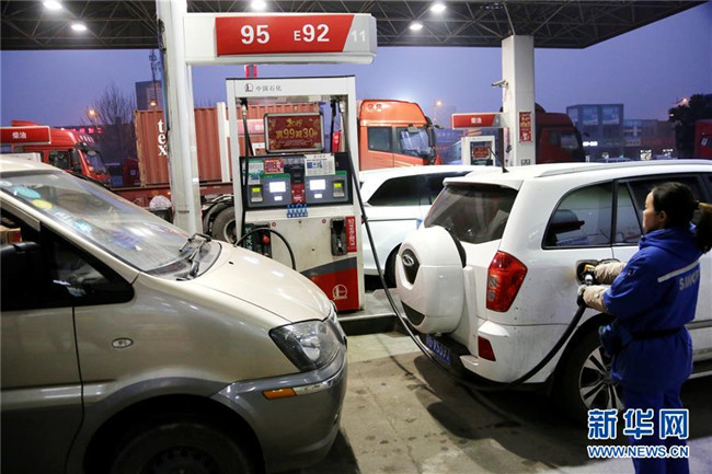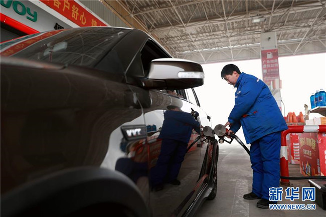 1月14日,河北省邢臺(tái)市任縣一加油站的工作人員在給車輛加油。新華社發(fā)(宋杰 攝)
