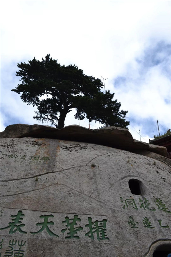 在南峰頂,孩子看到“天下絕無(wú)沉魚(yú)面,太華獨(dú)有落雁峰”的題刻,打趣我:“媽媽,你叫鴻雁,這里又叫落雁峰,真是和你有緣呢!快來(lái)這塊大石頭上落落腳,歇一歇!”“好啊!咱倆都爬累了,都歇一歇!”我為孩子的體貼欣慰!