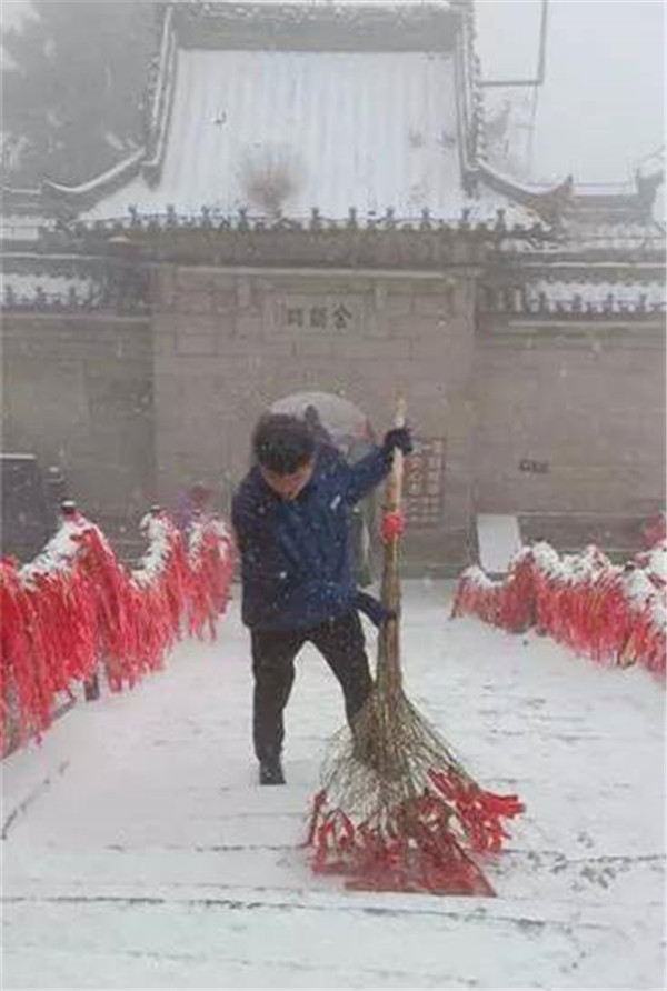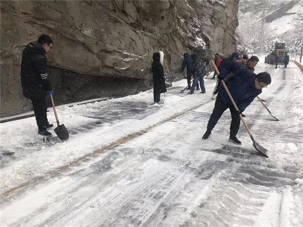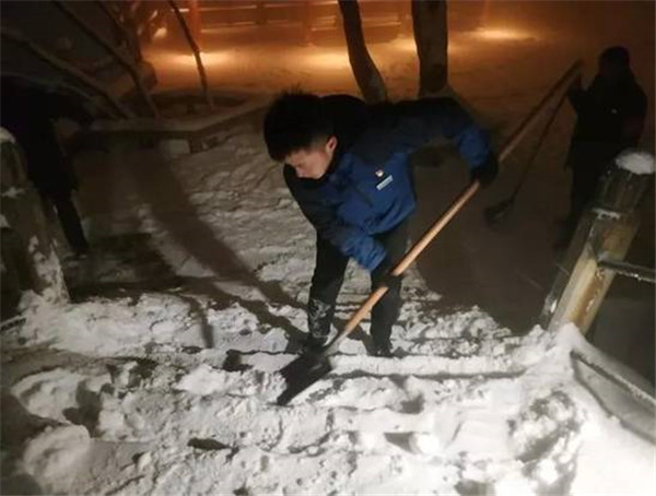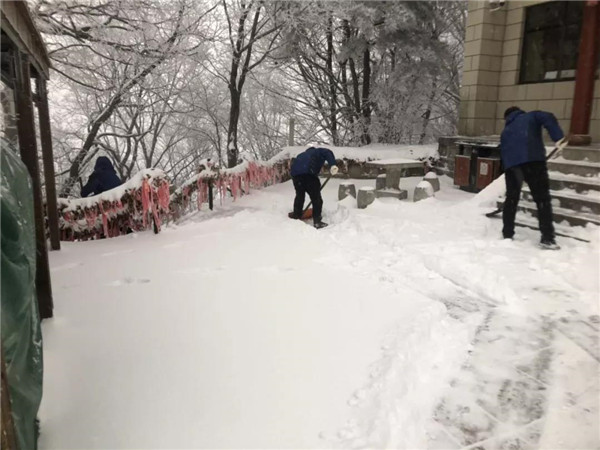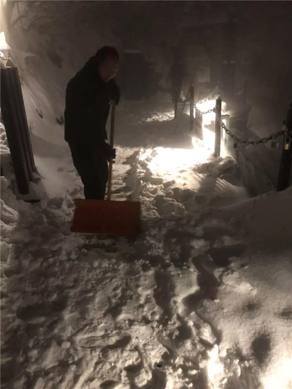 主峰區(qū)工作人員晝夜24小時不間斷清理積雪