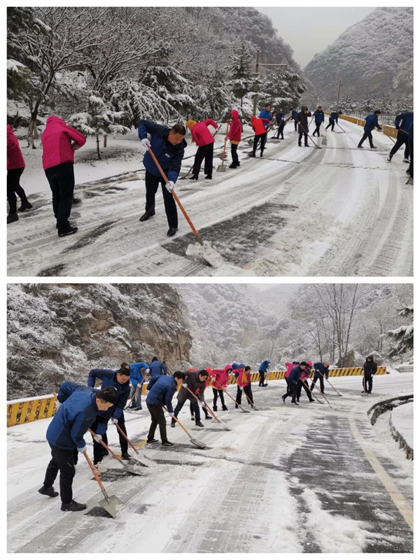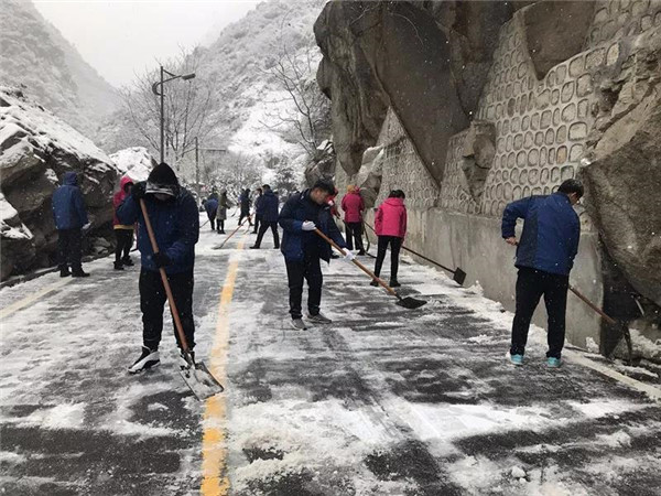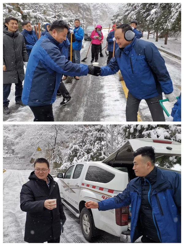 1月31日凌晨景區(qū)出現(xiàn)強(qiáng)降雪天氣,道路積雪嚴(yán)重影響行車安全。華旅集團(tuán)第一時間多渠道發(fā)布景區(qū)推遲運(yùn)營時間的信息,并向游客做好解釋工作,同時號召集團(tuán)各部室、各單位迅速組織人員赴進(jìn)山公路進(jìn)行掃雪除冰,經(jīng)過三個小時的全力清掃,東線進(jìn)山公路積雪清理完畢,景區(qū)在短時間內(nèi)恢復(fù)運(yùn)營,西線索道進(jìn)山公路及華山峪區(qū)域不斷加大清掃力度,盡力實現(xiàn)景區(qū)全線貫通。