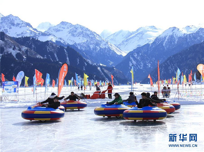 游客在天山天池景區(qū)體驗冰上娛樂項目(2月6日攝)。各地張燈結(jié)彩,處處歡聲笑語,地處中國西北邊陲的新疆各族群眾,新春佳節(jié)期間,耍社火、逛廟會、看演出、玩冰雪,載歌載舞,在濃濃的中華傳統(tǒng)文化氛圍中熱熱鬧鬧過大年。新華社發(fā)(甄梅攝)