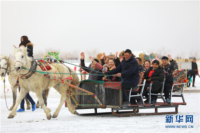 游客在南疆巴音郭楞蒙古自治州境內(nèi)的博斯騰湖冰面上體驗馬拉爬犁(2月6日攝)。各地張燈結(jié)彩,處處歡聲笑語,地處中國西北邊陲的新疆各族群眾,新春佳節(jié)期間,耍社火、逛廟會、看演出、玩冰雪,載歌載舞,在濃濃的中華傳統(tǒng)文化氛圍中熱熱鬧鬧過大年。新華社發(fā)(年磊攝)