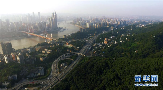 這是2018年10月10日無人機(jī)拍攝的重慶城市景象。新華社記者王全超攝