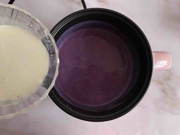 5.倒入攪拌機,攪打成牛奶紫薯糊