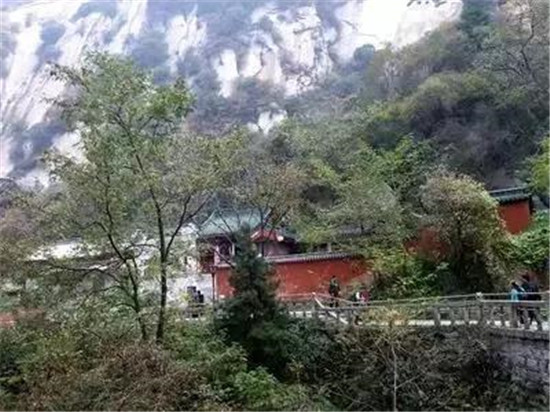 登臨青柯坪,還可眺望秦川,那種感覺就如從洞天俯視塵寰。四周峰巒環(huán)繞,林木蔥郁,山寺石洞,掩映其間,這里就是華山風水的結(jié)穴處。