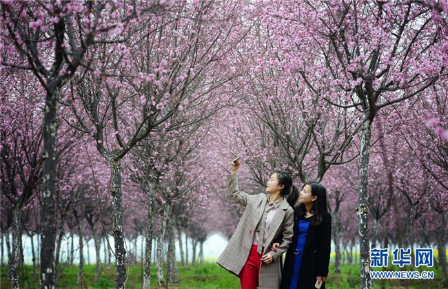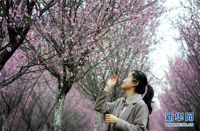 3月19日,游人在陜西勉縣新街子鎮(zhèn)觀賞美人梅。近日,陜西省漢中市勉縣新街子鎮(zhèn)數(shù)十畝美人梅開放,吸引游人前來踏春賞花。 新華社記者 劉瀟 攝