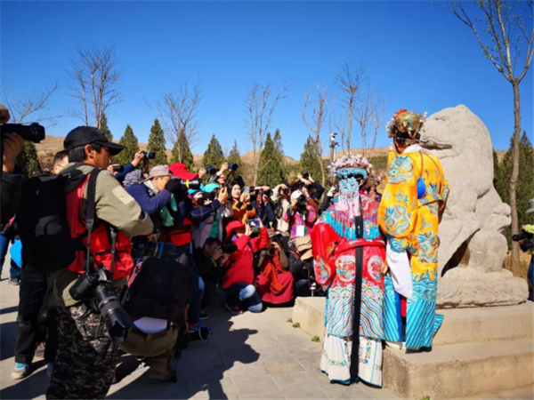 上午眾多攝影愛(ài)好者們齊聚蒲城泰陵景區(qū)大唐梨園廣場(chǎng),進(jìn)行以戲曲表演為主題一場(chǎng)的拍攝……