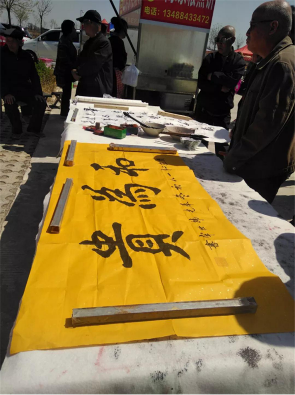 在精彩演出的同時(shí),旁邊的書(shū)法名家們也是為觀眾現(xiàn)場(chǎng)揮毫帶來(lái)了一幅幅滿意的作品。