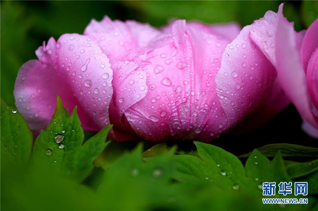 這是在石家莊市正定榮國(guó)府影視基地拍攝的牡丹花(4月13日攝)。時(shí)下,河北石家莊正定榮國(guó)府影視基地內(nèi)的牡丹花次第開放,在春雨的滋潤(rùn)下顯得格外晶瑩剔透、美麗嬌艷。 新華社發(fā)(陳其保 攝)