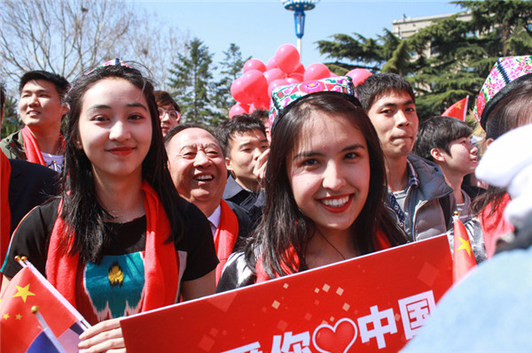 少數(shù)民族學(xué)生穿著民族服飾參加活動(平原/攝)