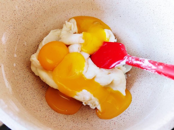 4.上下翻拌成面糊,把蛋黃加進去了