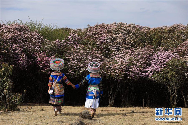 4月23日,兩名苗族游客身著盛裝登山賞花。 近日,四川省攀枝花市鹽邊縣龍頭山十余萬畝野生杜鵑花盛開,吸引省內(nèi)外游客前來登山賞花。 龍頭山位于四川省攀枝花市鹽邊縣北部的紅寶苗族彝族鄉(xiāng)境內(nèi),這里的野生杜鵑花花期為2月至5月。 新華社記者 江宏景 攝