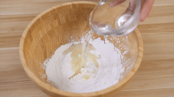 8.慢慢倒入清水,先用筷子攪拌。