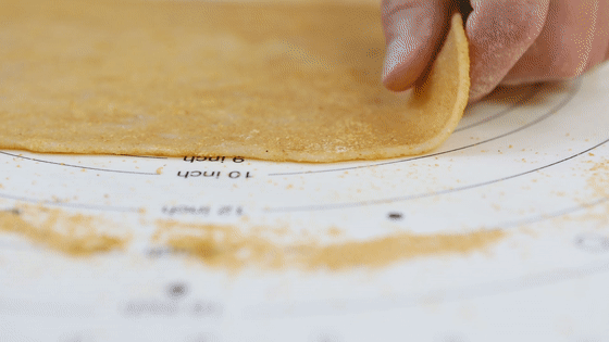 16.糯米面搟的時(shí)候一定要有耐心,大概搟成0.5厘米厚度的面片。
