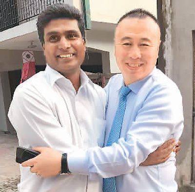 鞏雪樺(右)說(shuō),“一帶一路”倡議給像他這樣的民營(yíng)企業(yè)家?guī)?lái)了很多打開市場(chǎng)的新機(jī)會(huì)。