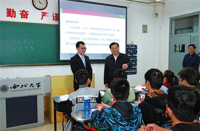 4月28日,省委書記胡和平到西北大學(xué)調(diào)研學(xué)校思想政治理論課建設(shè)情況。胡和平隨堂聽取趙沛老師講授的毛澤東思想和中國特色社會(huì)主義理論體系概論,并與師生交流學(xué)習(xí)感想。 記者 宋紅梅攝