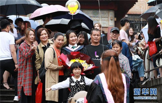 5月4日,華南農業(yè)大學畢業(yè)生與家人在校園里拍照留念。 當日是五四青年節(jié),在位于廣州的華南農業(yè)大學校園里,該校2019屆畢業(yè)生開始拍攝畢業(yè)合影,留下青春的紀念。 新華社記者 王瑞平 攝