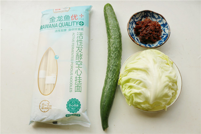 主料:金龍魚活性發(fā)酵空心掛面100克   圓白菜50克   黃瓜1根
