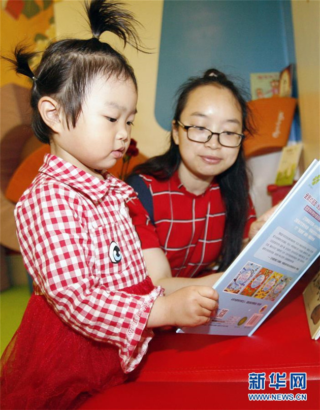 5月12日,一名孩子在家長陪伴下閱讀繪本。新華社記者 劉蓮芬 攝