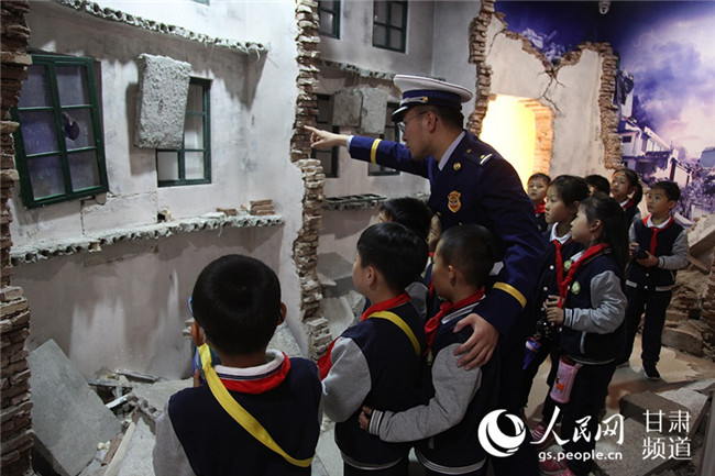 學(xué)生們學(xué)習(xí)地震逃生知識(shí)。(甘肅省森林消防總隊(duì)政治部供圖)