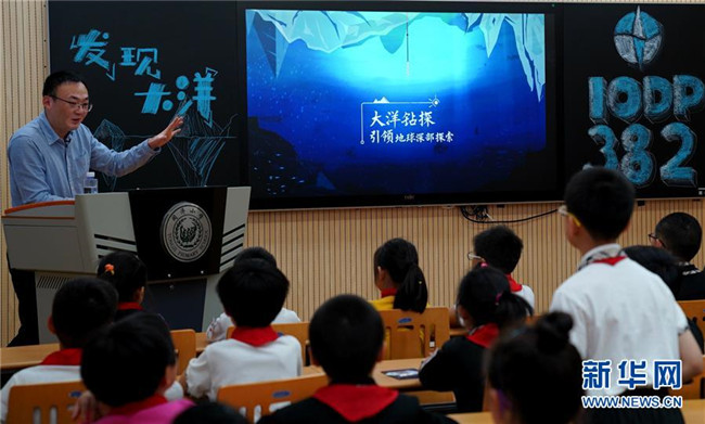 當日,上海同濟小學開展了一堂科普直播課。正在南極開展大洋鉆探的中外科學家通過視頻連線直播的方式,向該校四年級學生介紹在南極海域開展大洋鉆探的科考生活和科學意義。