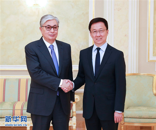 5月14日至16日,中共中央政治局常委、國務(wù)院副總理韓正應(yīng)邀赴哈薩克斯坦出席第十二屆阿斯塔納經(jīng)濟論壇和第二屆中國——哈薩克斯坦地方合作論壇,并會見總統(tǒng)托卡耶夫。