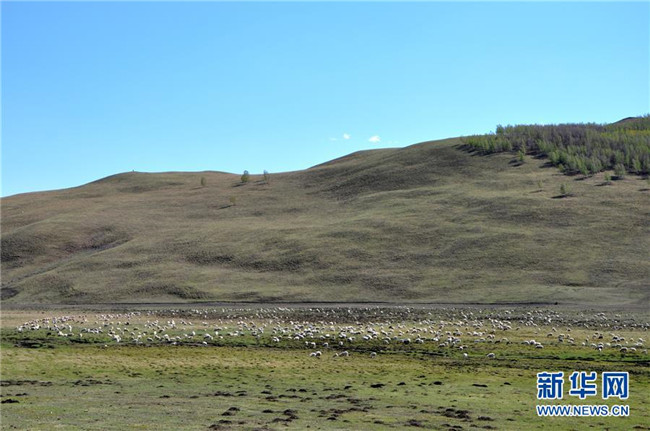 5月22日,羊群在內(nèi)蒙古興安盟境內(nèi)的草原上吃草。近期,隨著降雨量增多、氣溫回暖,內(nèi)蒙古草原陸續(xù)進(jìn)入返青期。新華社記者殷耀攝