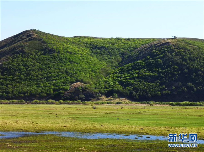這是5月22日拍攝的內(nèi)蒙古興安盟境內(nèi)一處山巒、草原和濕地風(fēng)光(手機(jī)拍攝)。近期,隨著降雨量增多、氣溫回暖,內(nèi)蒙古草原陸續(xù)進(jìn)入返青期。新華社記者殷耀攝