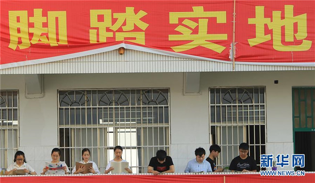 6月4日,在湖南省衡陽縣第一中學,高三學生在教室外的走廊看書。新華社發(fā)(曹正平攝)