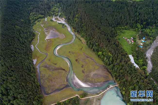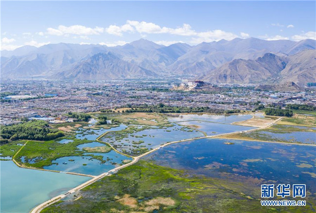 被譽為“拉薩之肺”的拉魯濕地(6月5日無人機拍攝)。新華社記者 普布扎西 攝