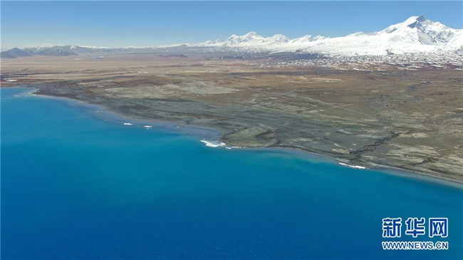 卓奧友峰山腳的佩枯錯(4月26日攝)。新華社記者 晉美多吉 攝