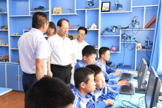 石泰峰十分關心農村學校運用“互聯網+”破解師資力量和優(yōu)質教育資源短缺問題。在西夏區(qū)鎮(zhèn)北堡鎮(zhèn)華西中學和賀蘭縣洪廣鎮(zhèn)金山小學,石泰峰走進科普活動室、錄播室和教師辦公室,了解視頻遠程教學和在線互動課堂開展情況。他說,“互聯網+教育”是促進教育公平的有效手段,要通過互聯網技術,一方面把區(qū)內優(yōu)質教育資源輸送到偏遠地區(qū)、農村學校,一方面引進發(fā)達地區(qū)先進教育理念、教學技術、數字資源為我所用,提升教育教學水平。