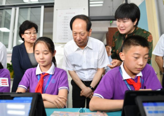 6月10日,石泰峰來到銀川市二十一小學本部,調研“互聯網+”創(chuàng)新素養(yǎng)教育開展情況。
