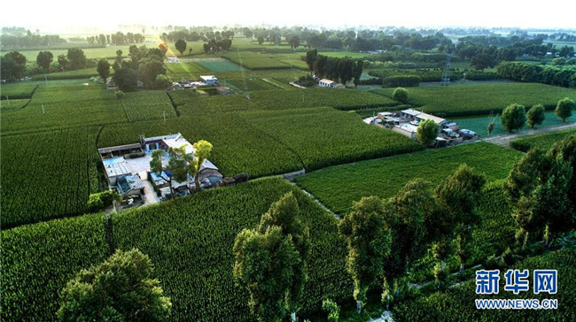 陜西榆林市靖邊縣東坑鎮(zhèn)新建村綠色包圍中的農(nóng)家小院(2018年7月31日無人機拍攝)。陜西省開展的天然林保護工程和全面治理荒沙行動,極大改善了毛烏素的生態(tài)環(huán)境,也使沙漠南緣的陜西省榆林市實現(xiàn)從“沙進人退”到“綠進沙退”的轉(zhuǎn)變。 新華社記者 陶明 攝