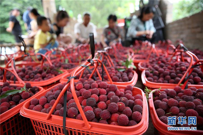 6月15日,在丹寨縣揚武鎮(zhèn)老冬村楊梅種植園,果農(nóng)在整理準(zhǔn)備出售的楊梅。新華社發(fā)(黃曉海 攝)