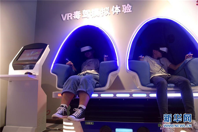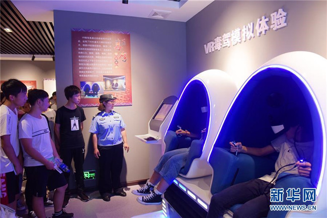 6月26日,在湖北省宣恩縣未成年人法治教育和禁毒警示教育基地,學(xué)生通過虛擬現(xiàn)實(shí)設(shè)備,了解吸毒駕駛的危害。新華社發(fā)(王俊攝)